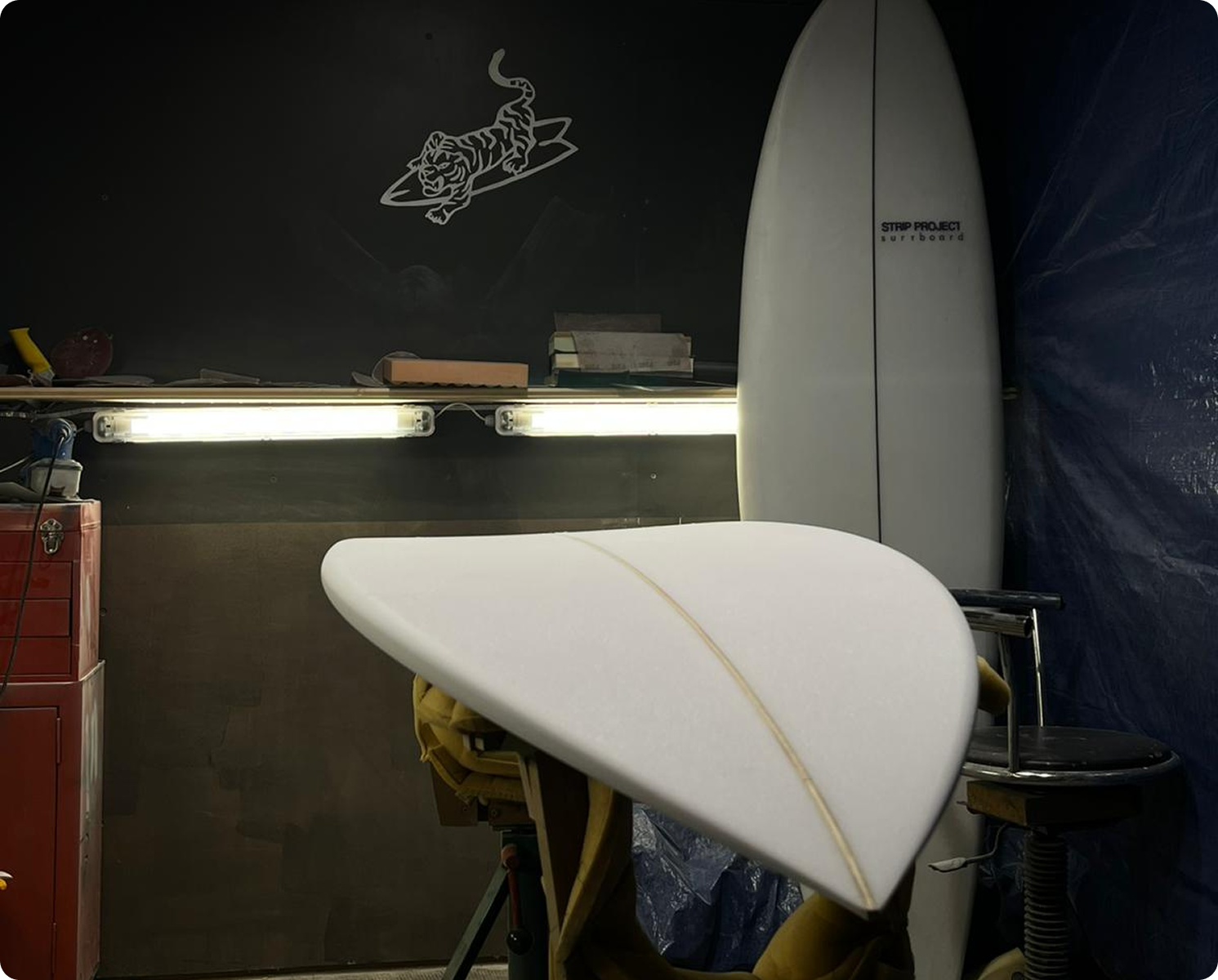 Chez Strip Project, on fait surtout du sur-mesure, pour que ta planche colle parfaitement à ton surf. Mais on garde aussi quelques modèles uniques en réserve : parfaits pour découvrir des shapes et des designs si tu n’as pas encore d’idée pour ta future board, ou pour tomber direct sur celle qui t’attendait.